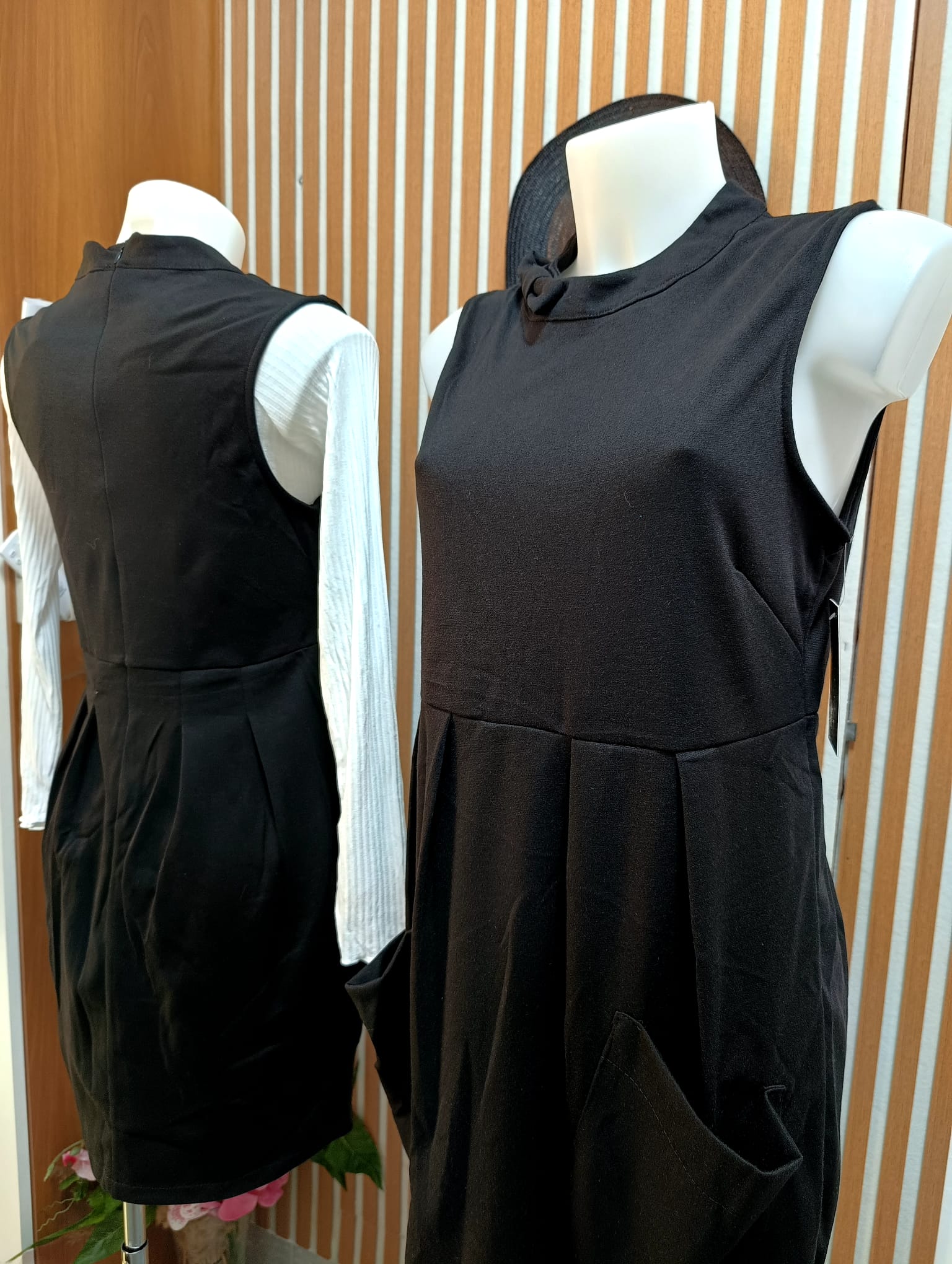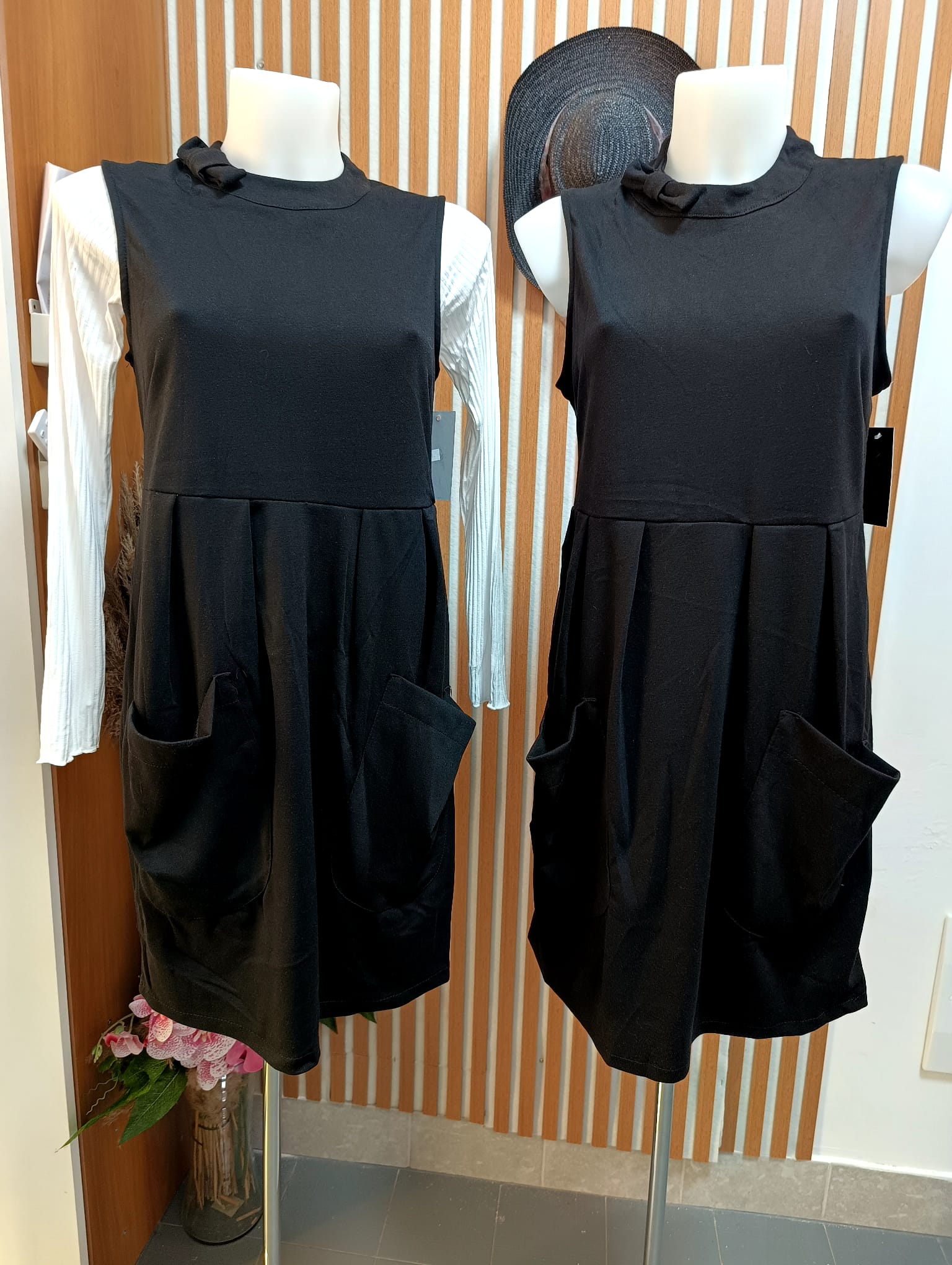 Abito realizzato in morbido tessuto, offre calore e comfort. Il suo taglio elegante e morbido valorizza la figura, mentre il colore nero si sposa magnificamente con i toni autunnali. Ideale per una giornata casual o una serata speciale, aggiunge un tocco di classe al guardaroba.